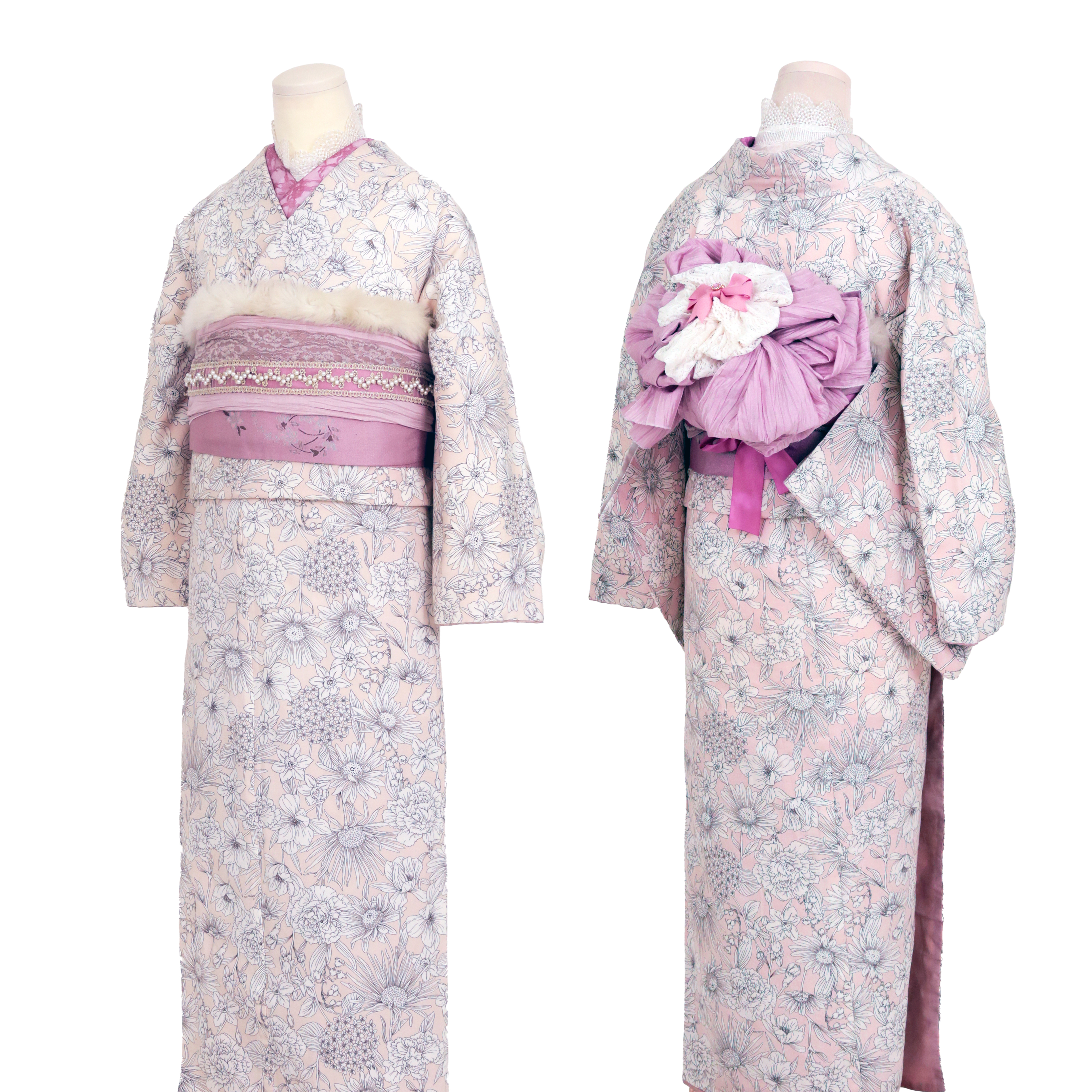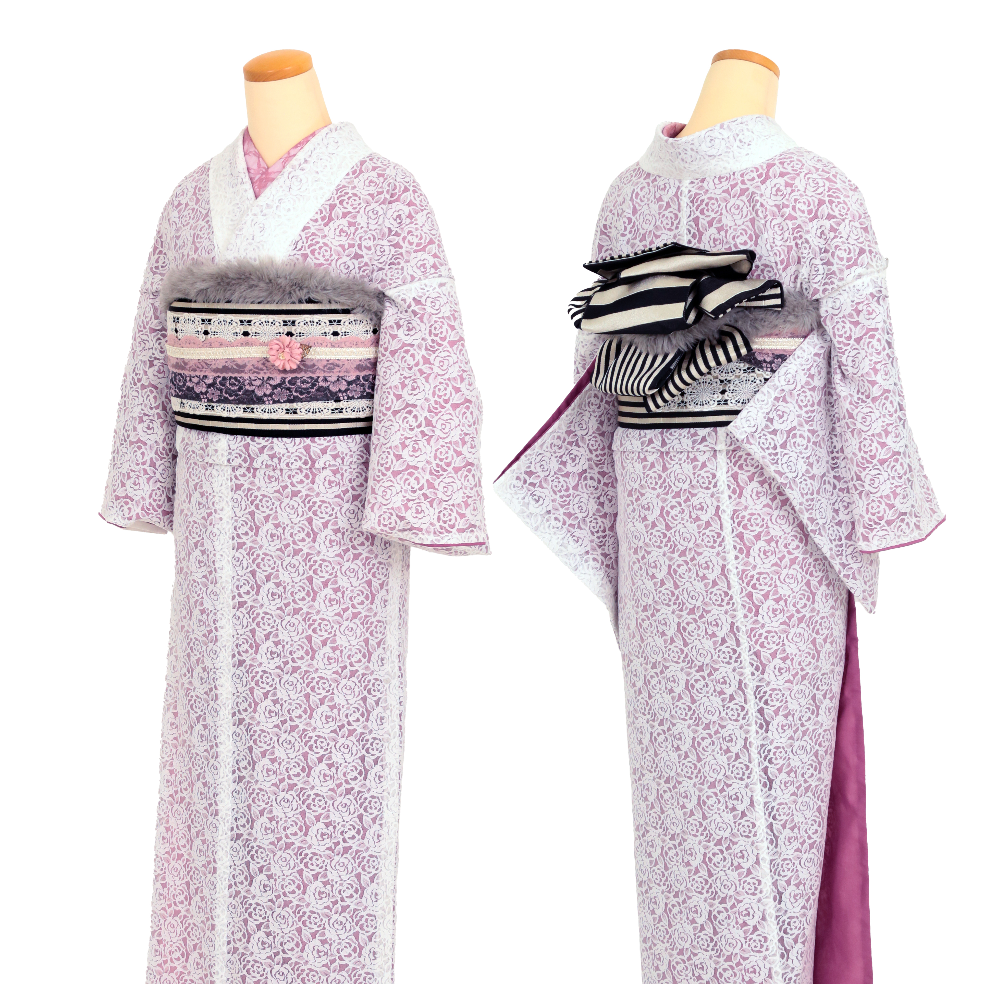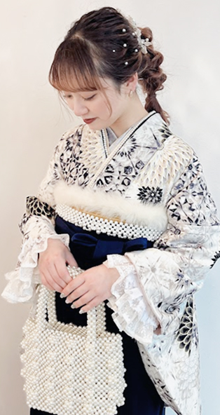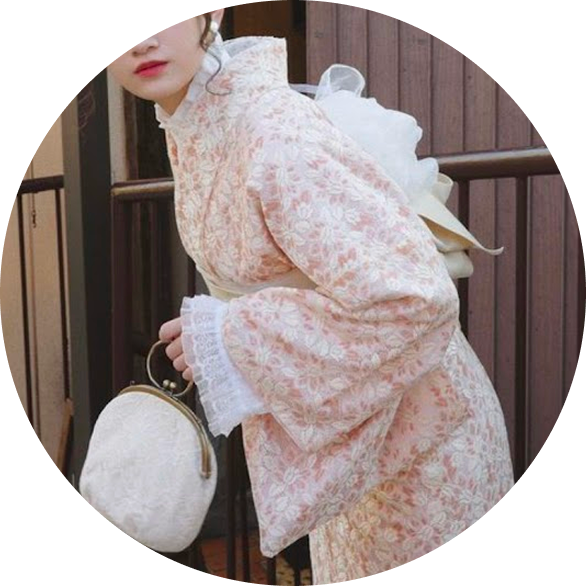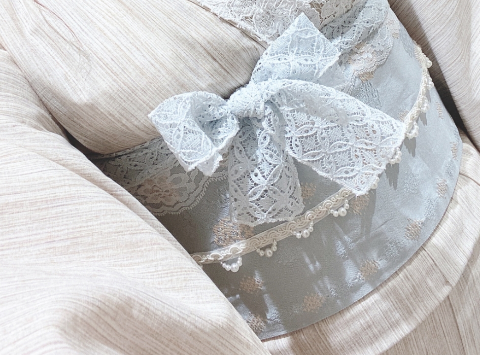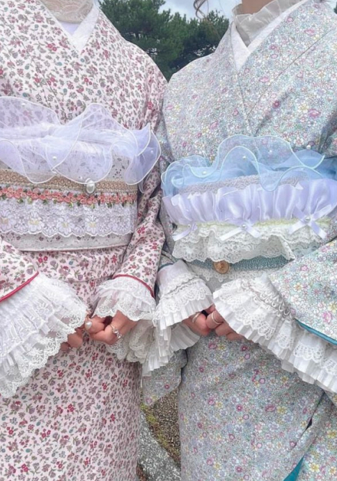 包和发饰自不必说,蕾丝的里衣、蕾丝的腰带彩绳等,在可爱和服的基础上添加配件,以独一无二的搭配,令美照也惊艳他人。