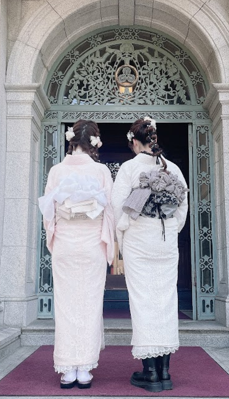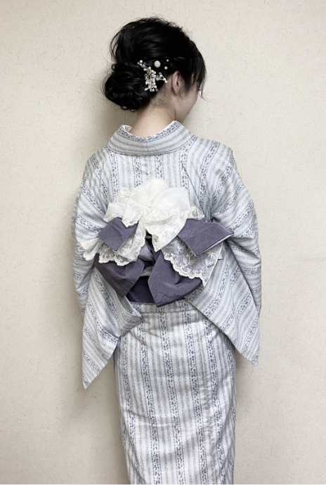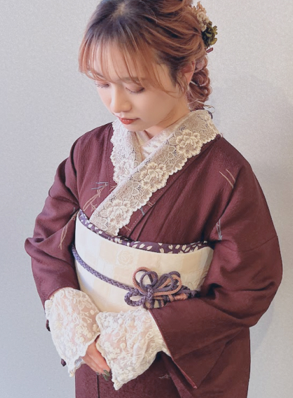 包和发饰自不必说,蕾丝的里衣、蕾丝的腰带彩绳等,在可爱和服的基础上添加配件,以独一无二的搭配,令美照也惊艳他人。